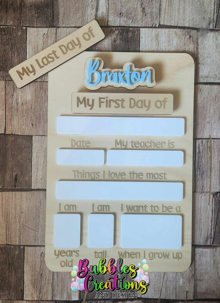 This listing is for 1 Interchangeable First and Last Day of School Sign designed and made by us at Bubbles Creations and Design